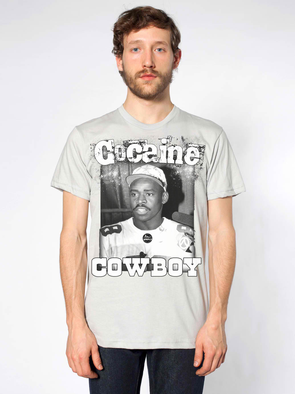 -COCAINE COWBOY TEE IS PRINTED ON A PREMIUM FIT, LIGHT GRAY TEE.